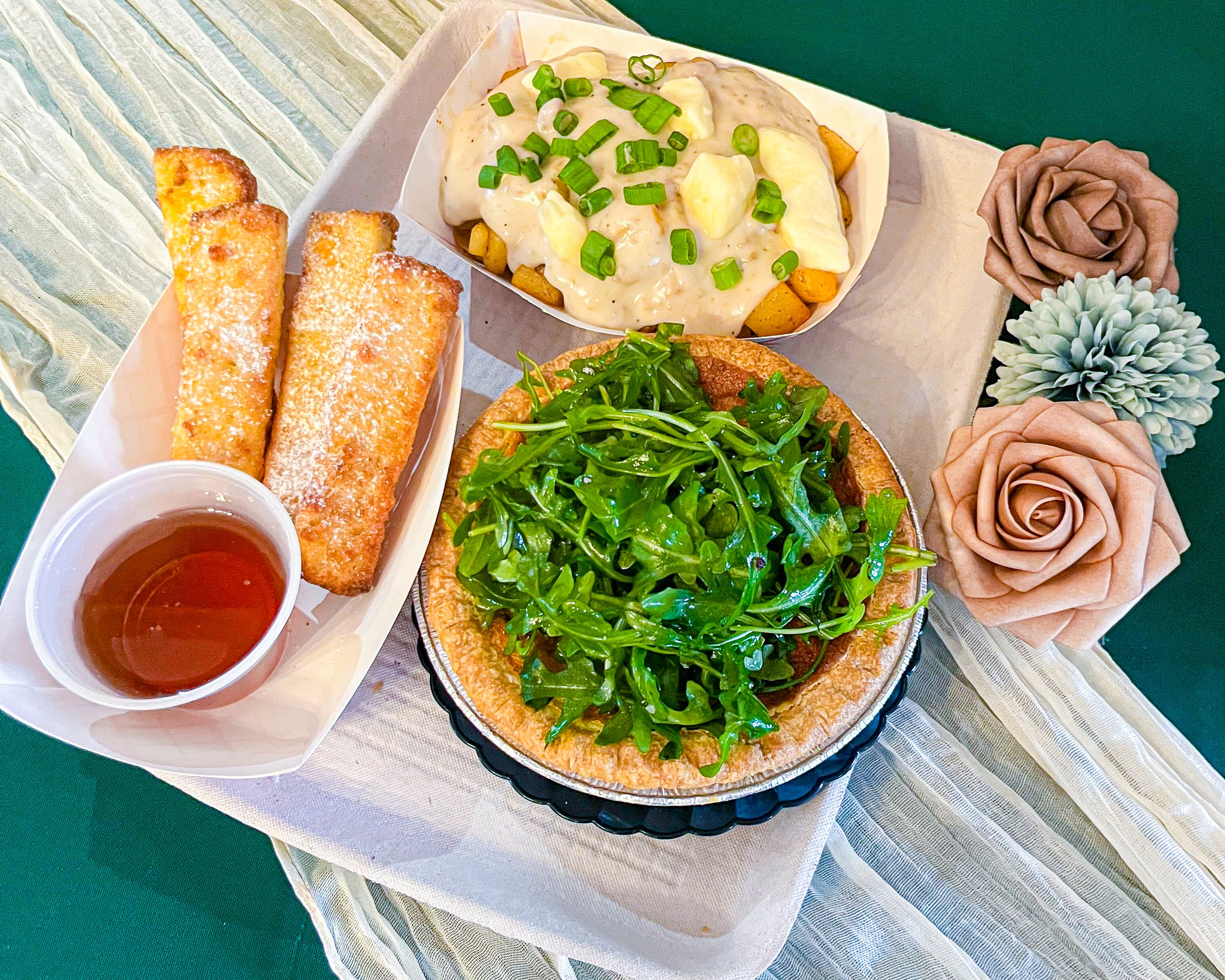 Optional: Pre-Order Breakfast for 2! Includes French toast sticks w. maple syrup, biscuits and gravy and a caramelized onion and gruyere quiche topped w. arugula. Pick-up at the Gifford Barn.